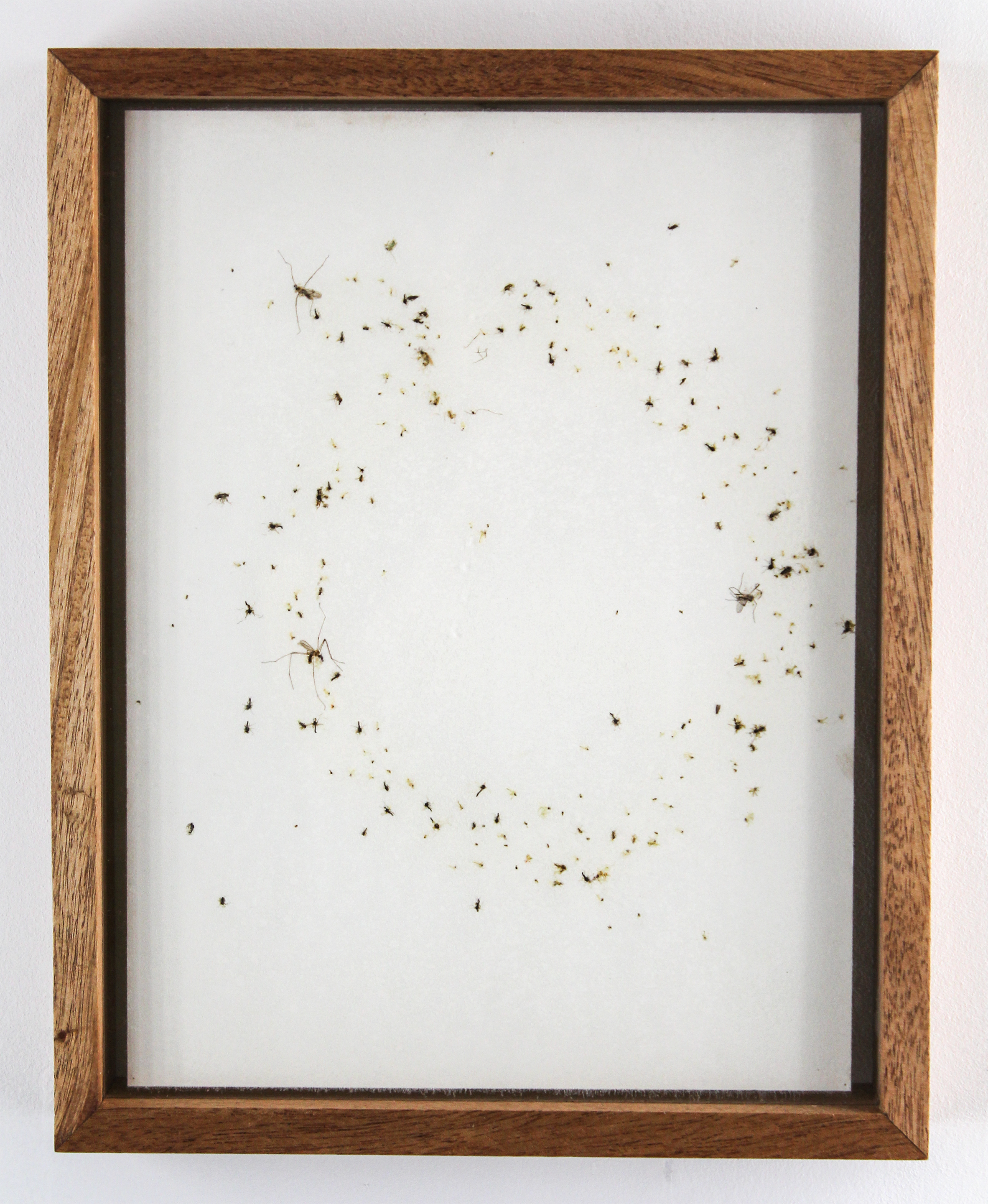 nocturnal insects and adhesive on paper, plexiglass, wooden frame