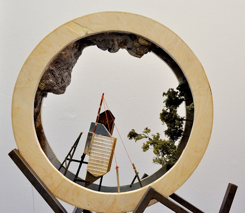 wood, steel, threads, plaster, dirt, rubber, spraypaint, fabric