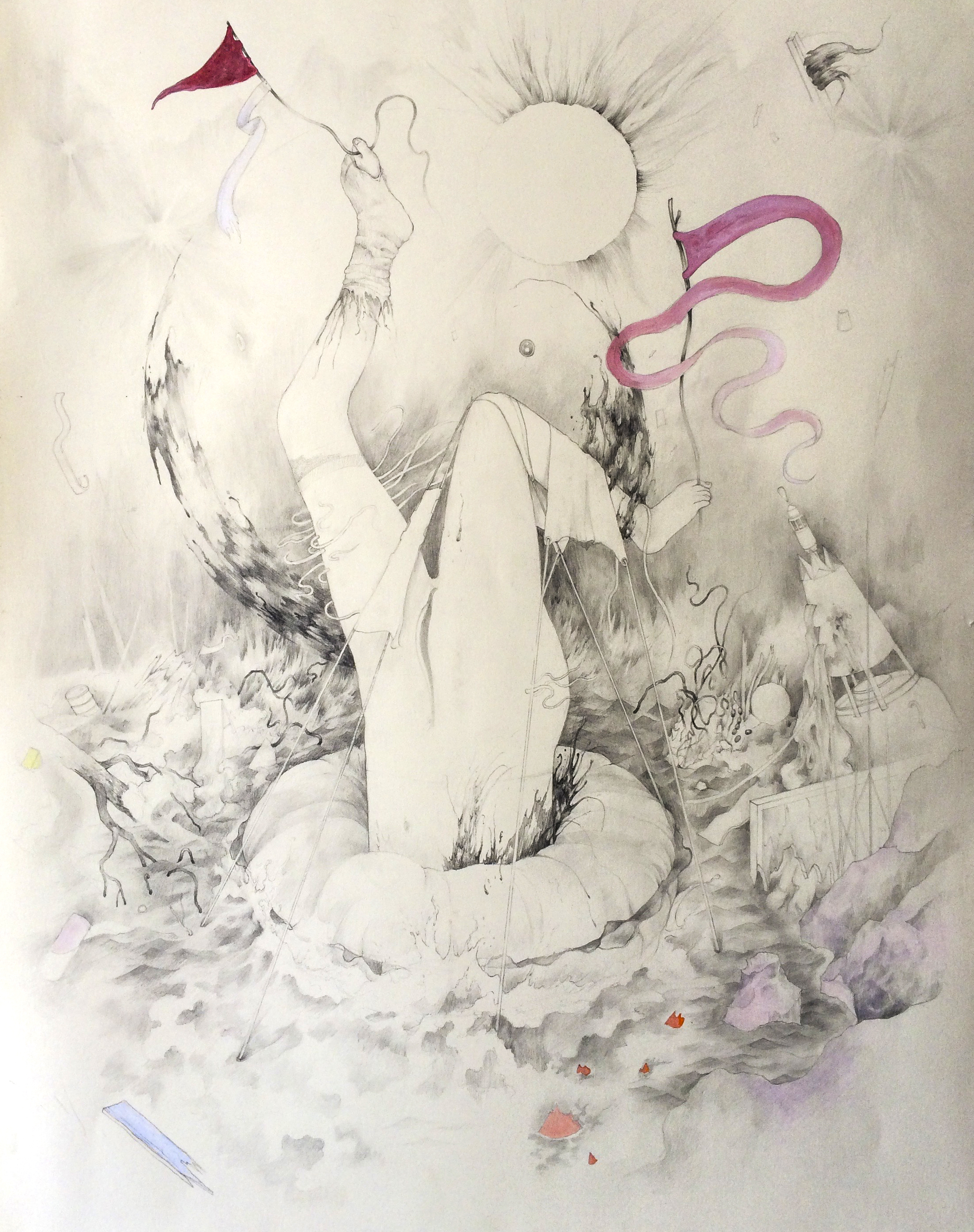 graphite, tape, chalkboard paint, and tracing paper on wood