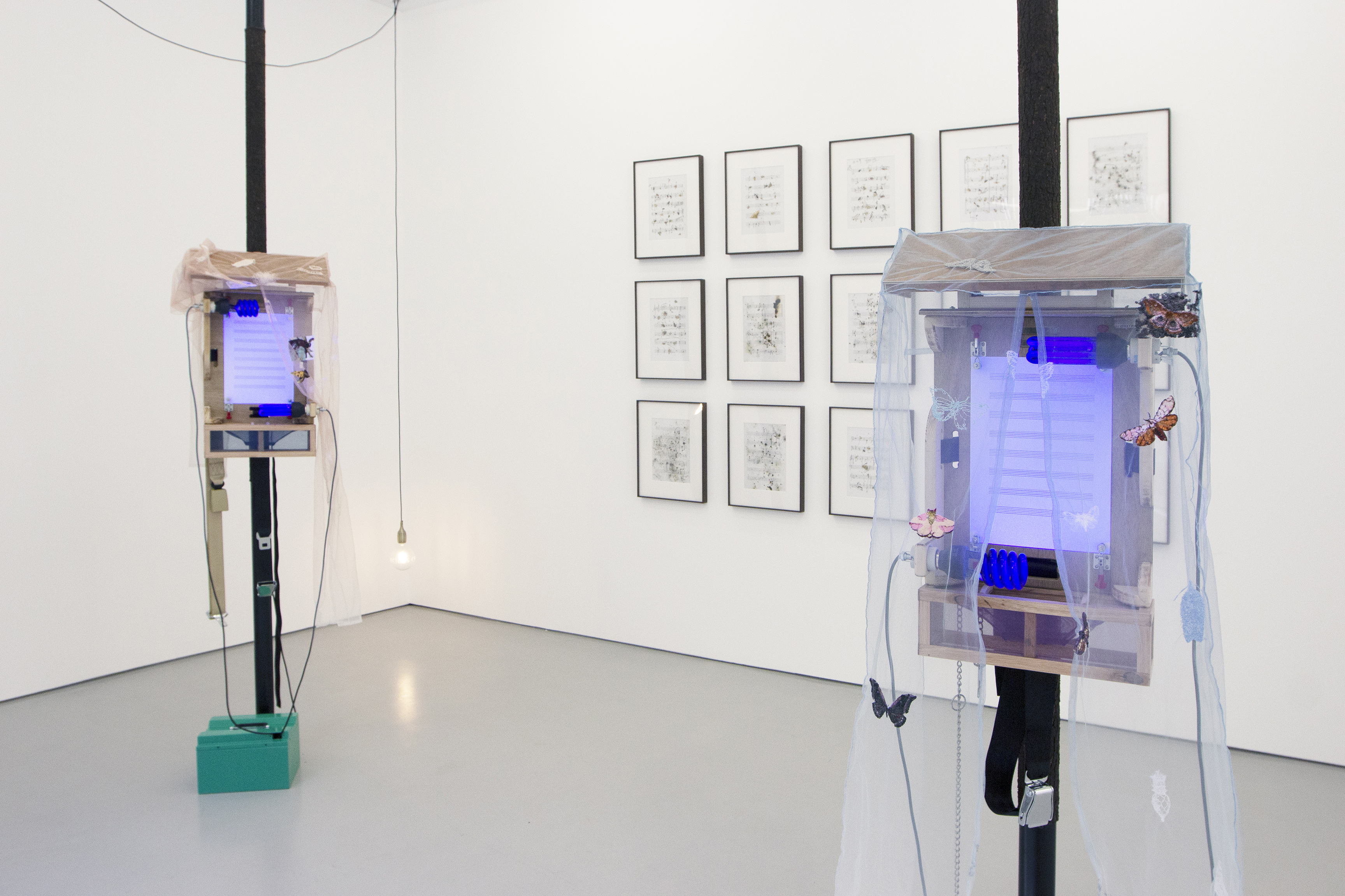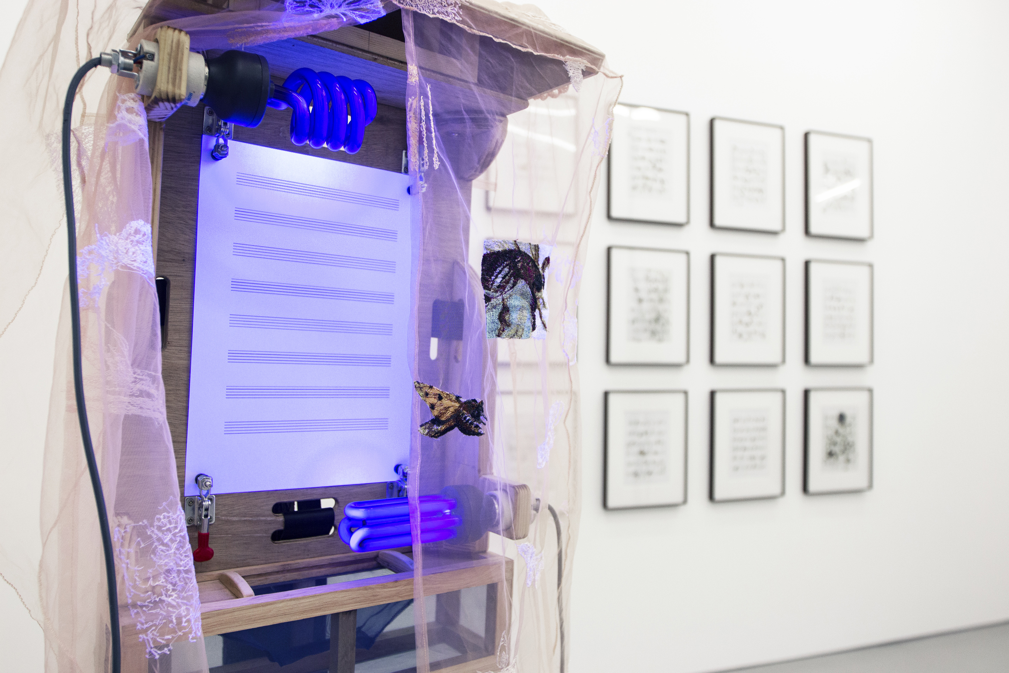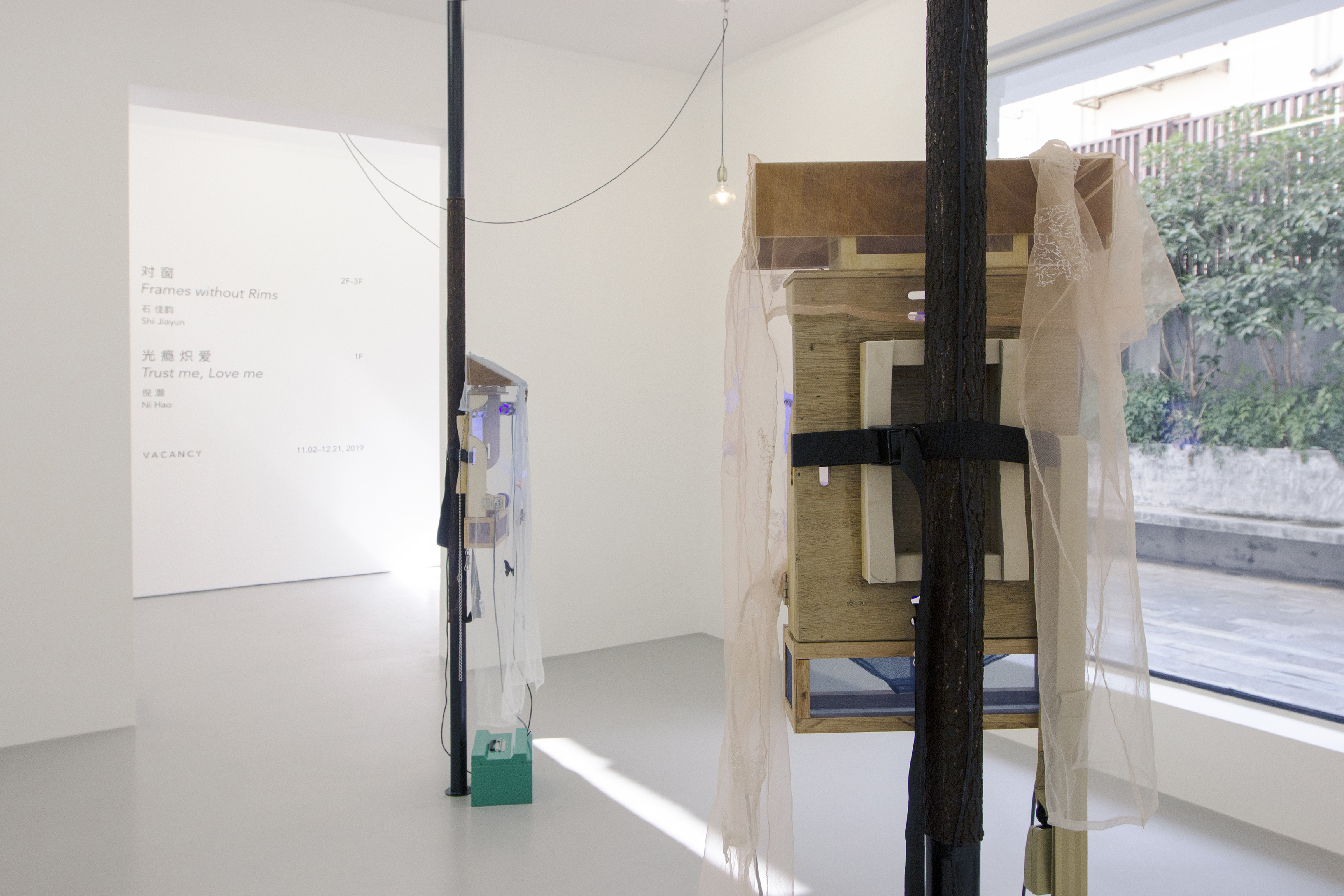 | Gallery Vacancy is pleased to present Trust Me, Love Me, Ni Hao’s first solo exhibition in Shanghai, from November 2 to December 21, 2019. Series of Structure Study by Ni Hao explores the inelasticity and hidden aggression within the development of technology, translating violent representation into invisible yet surrounding poetics in his sculptural forms through music performance. In Structure Study III (2014), Ni Hao expanded from the scientific fact that the evolution of insects neglects the invention of light bulb. With a series of field practices, the accidental tragic of phototaxis driven insects following their mating impulse at night but unavoidably deceased on the blank music sheets is transformed into the metaphor for human’s belief and adaption to technology and social standards. Representing the artist’s questioning to civilization and instinct, the engraved texts on the light bulbs, Divergent Phototaxis, Vicious Circularity, and Nowhere No Place, hinted the reachable but untouchable distance between reality and faith through the insects’ restless pursuits and deadly attempts to light, with them flying into light but never to the source of light. The waterproof cloth used in the outdoors insect trap is replaced as the embroidered gauze in Light Trap, fragmenting the image of scientifically documented insects through needles and threads from folk-custom craftsmanship, converting knowledges of natural history into non-functioning souvenirs within the embodiment of material civilization. The music scores covered with insects and burn marks are eventually translated into melodies by the invited musician with xylophone. Ni Hao claims that xylophone is the source of first-generation mobile ringtone, which alters interconnection within modern society, both between individuals and between human and environments; and fire serves as the origins of civilization but also brings out wars. The title of the show, Trust Me, Love Me, along with the desultory music reveal the consistent tangling between instinct and standard, belief and practice. The incandescent light traps, insects embedded scores, as well as the performance, video and sound generated from them constitute a series of paralleled yet interwoven works that are displayed on the first floor of the gallery. This exhibition expands from Structure Study III, created by Ni in 2014, investigating power structure, consumerism, and violence aesthetics by utilizing various mediums such as sound, installation and video. His practice constantly provokes political symbols or personal memories behind seemingly familiar objects. Ni retains the original form of real-life objects such as the incandescent light bulbs and scores, but accordingly instigates defamiliarization and re-imagination through reorganization, arousing a bizarre sense of dislocation. How institutional structures control our daily life has become the main axis of Ni's comprehensive artistic practice since 2012. Ni examines different modalities of violent mechanisms and power structures in society, disclosing the contoured reality, as the truth is always more absurd than art. |